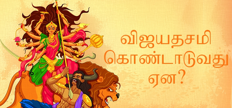 விஜயதசமி என்றால் வெற்றி தருகிற நாள் என்று அர்த்தம். நவராத்திரியின் போது தான் துர்கா தேவி மகிஷாசுரனுடன் ஒன்பது நாட்கள் போர் செய்து, ஒன்பதாம் நாள் நவமியில் மகிஷாசூரனை வதம் செய்தாள். மறுநாள் தசமியில் தேவர்கள் அந்த வெற்றியை விஜயதசமியாக கொண்டாடினார்கள்.
