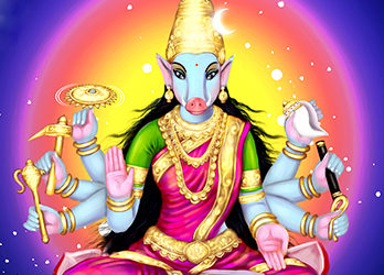 Goddess Varahi is one of the Eight Matrikas, a group of mother goddesses. She has the head of a sow and represents the feminine energy of Varaha, the boar avatar of Lord Vishnu. Varahi is a form of Lakshmi, the goddess of wealth. While Lakshmi bestows wealth, Varahi eliminates bad luck. Chanting Varahi Moola Mantra can remove the adverse effects of Kala Sarpa dosha and other doshas.