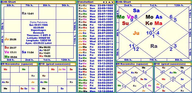 Horoscope of Deepika Padukone , Janam Patri, Birth chart